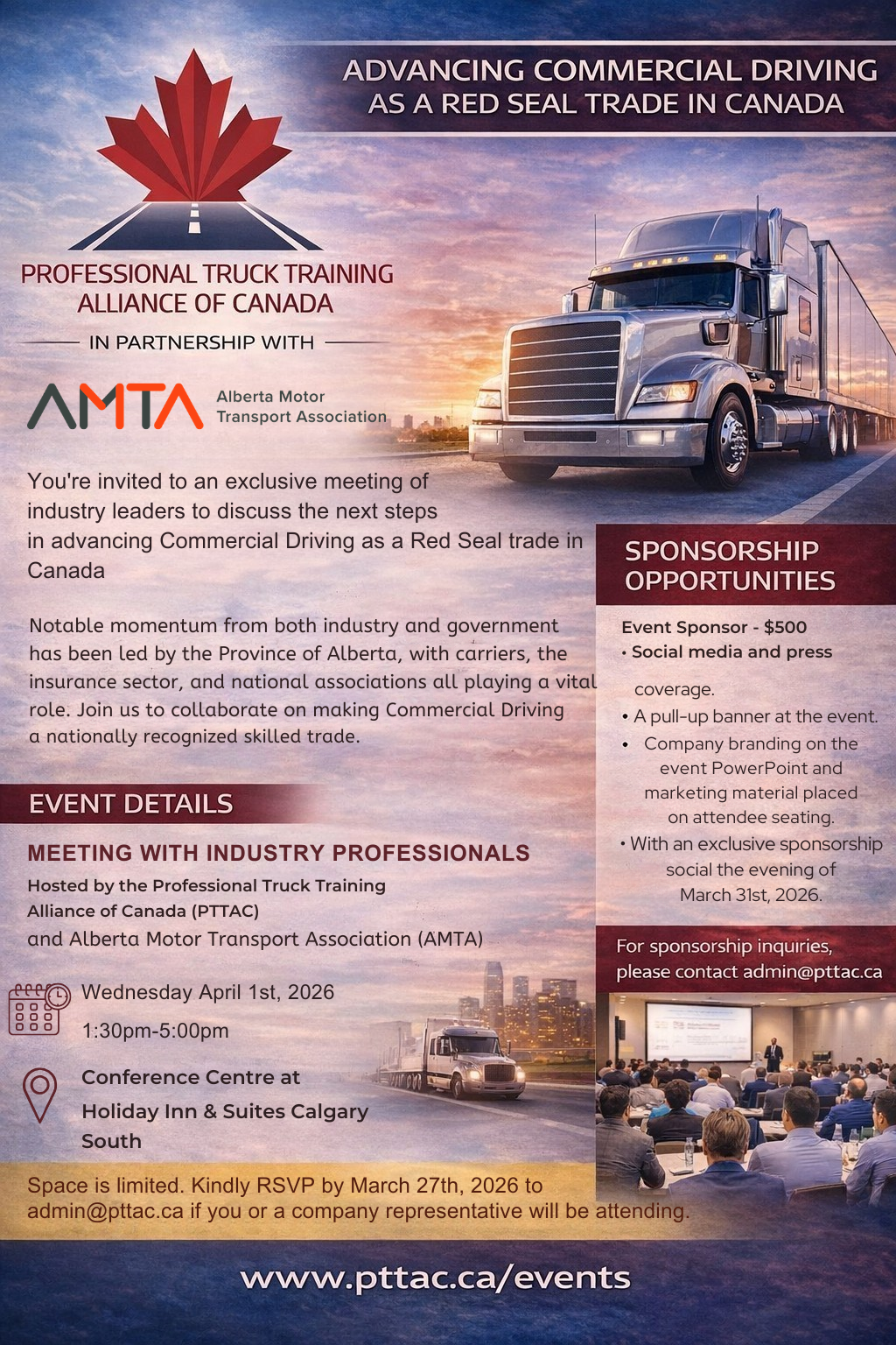 Back to All Events PTTAC / AMTA Red Seal Meeting Wednesday, April 1, 2026 1:30 p.m. 5:00 p.m. Google Calendar ICS